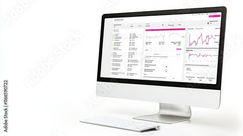 Modern Desktop Computer Displaying Financial Data Analytics Charts and Graphs on Screen