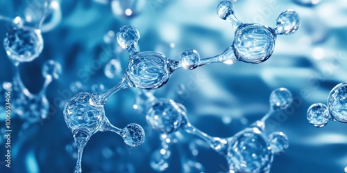 Modern Digital Abstract 3D Background with Flowing Water Molecules and Digital Particles Symbolizing Health and Wellness