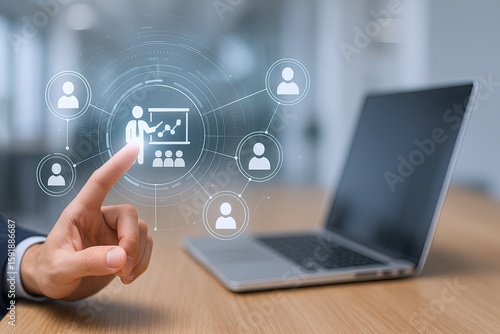 Modern digital business concept with user icons teamwork and innovative technology.