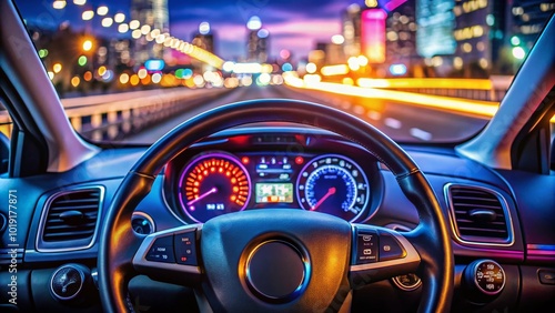 Modern Digital Car Dashboard Display with Speedometer, Navigation, and Vehicle Information Features