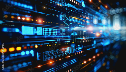 Modern digital landscape with blue circuits and interconnected networks, futuristic cyber environment