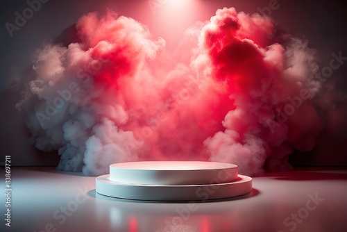 Modern Display Podium with Dramatic Red Smoke Background for Product Showcase, Perfect for Advertising, Marketing, and Presentation Needs