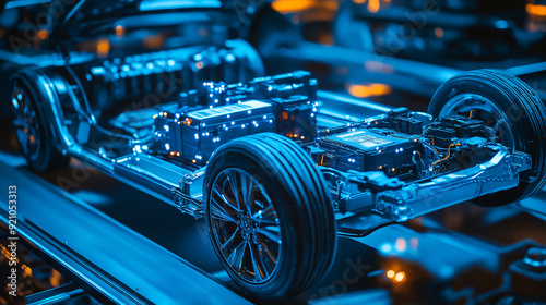 Modern Electric Vehicle Lithium Battery Pack with Power Connections in Vibrant Blue Design