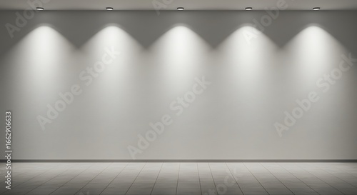 Modern Empty Gallery Space Bathed in Warm Spotlights, Featuring a Pristine White Wall and Wood Flooring