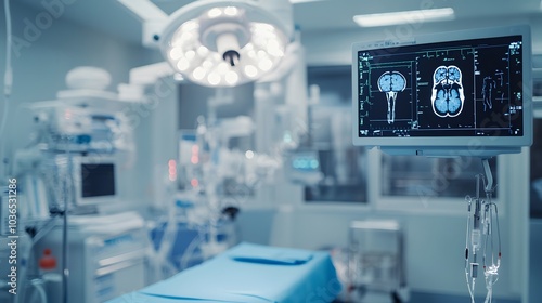 Modern equipment in operating room. Medical devices for neurosurgery.