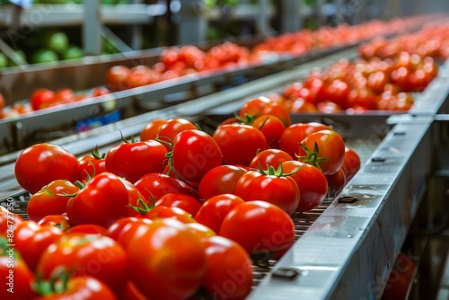 Modern Factory Processing Freshly Harvested Tomatoes into Canned Goods