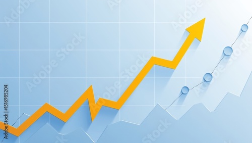 Modern financial chart illustration with zigzag yellow line and powder blue trends on calming grid background