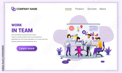 Modern flat design concept of Team work design with characters in meeting and presentation. Can use for banner, business marketing, content strategy, landing page, web design. Flat vector illustration