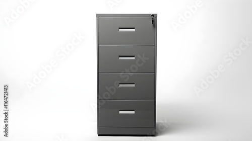 Modern Four-Drawer Metal Filing Cabinet in Office Setting, Depicting Efficiency and Organization