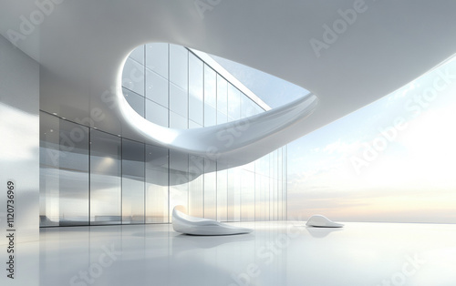 Modern Futuristic Architecture with Curved Glass Walls