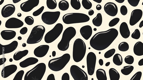 Modern geometric seamless pattern featuring abstract mesh of drops in black on a soft cream background, perfect for trendy designs