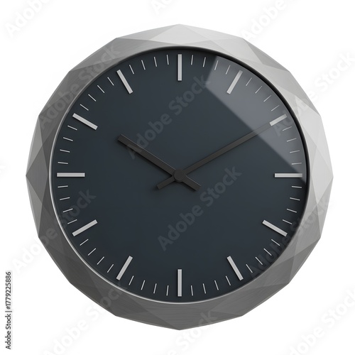 Modern Geometric Silver Wall Clock Isolated on White perfect for Website banners, e-commerce product listings, interior