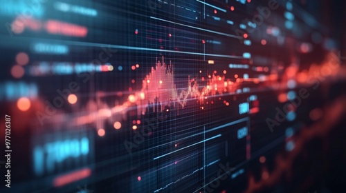 modern graph on a digital screen showing an upward trend. The graph is accompanied by clear data points and figures representing economic indicators.