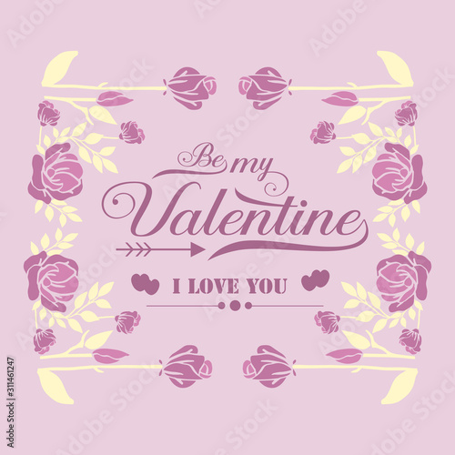 Modern greeting card happy valentine, with pink wreath frame seamless. Vector