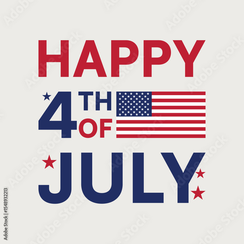 Modern Happy 4th of July Typography Vector with American Flag and Stars on White Background