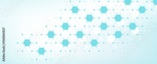 Modern health care or medical background design. Health care innovation concept. Horizontal header web banner. Abstract geometric background with hexagon shapes for medicine, science, chemistry.