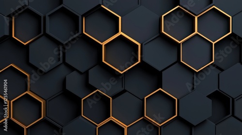 Modern Hexagonal Pattern with Black and Gold Elements for Creative Background Design