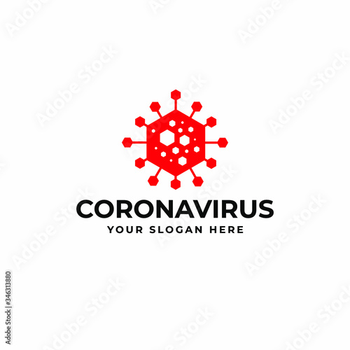 Modern hexagonal shield covid-19 corona virus logo design vector template. Covid 19 icon design for business or corporate identity.