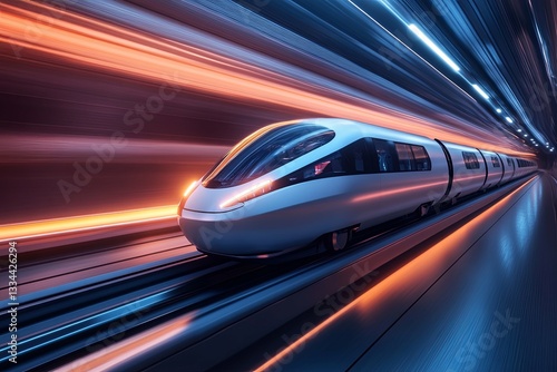 Modern High Speed Train Traveling Through A Lit Up Tunnel