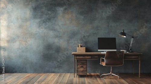 Modern Home Office Setup with Desk, Computer, and Stylish Lighting