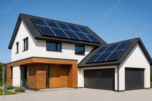 Modern home with solar panels showcasing sustainable living under a clear blue sky Generative AI