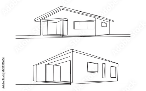 Modern house architectural sketch with clean lines and geometric shapes architectural drawing