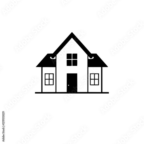 Modern House Design: Minimalist Home Architecture. Simple Geometric Structure, Black and White. Ideal for Real Estate, Property, and Home Design projects.