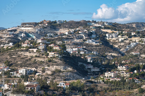 Modern houses are being built on a hill in Agios Tychonas. Limassol, Cyprus