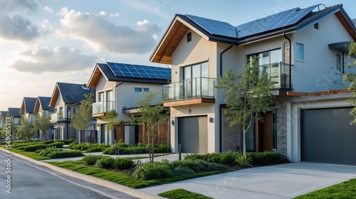 Modern Houses with Solar Panels and Lush Gardens — A Vision of Sustainable Living, Energy Autonomy, and Architectural Harmony with Nature