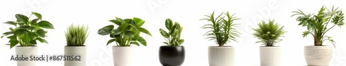 Modern Indoor Plant Collection: Six Sleek Vases with Green Plants, Perfect for Home Decor
