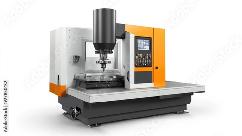 Modern Industrial CNC Machine with Orange and Grey Color Scheme