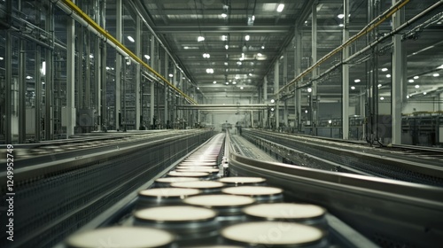Modern industrial facility showcasing automated production line with circular containers in motion