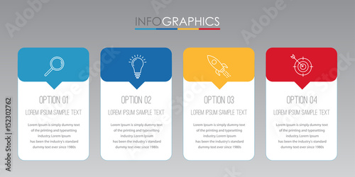 Modern Info-graphic Template for Business with four steps multi-Color design, labels design, Vector info-graphic element, Flat style vector illustration.