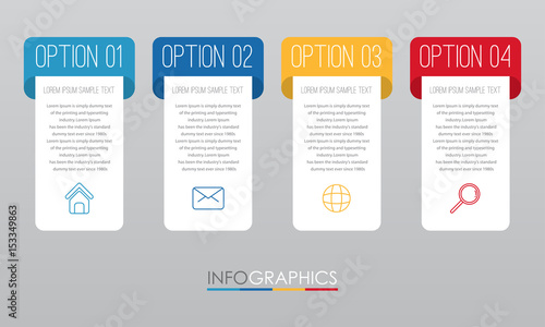 Modern Info-graphic Template for Business with four steps multi-Color design, labels design, Vector info-graphic element, Flat style vector illustration.