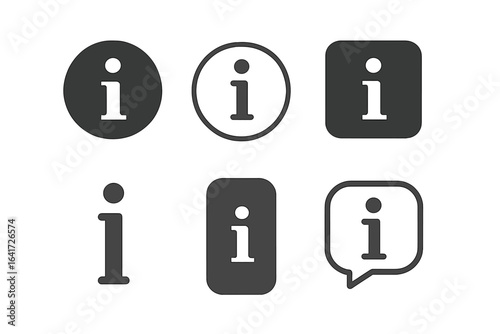 Modern Information Icon Button Collection, Vector Illustration Set of Six Minimalist Info Symbols on Transparent Background, UI Design Elements, Tech and Communication Icons
