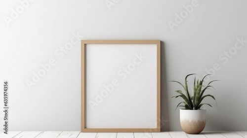 Modern interior of Empty wooden picture frame mockup hanging on wall background