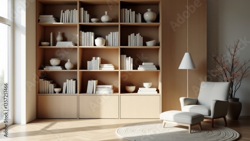 Modern Interior With Bookshelf And Armchair