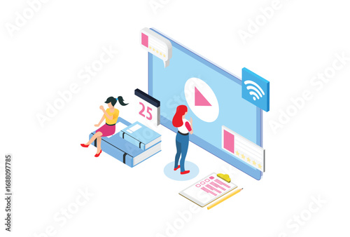 Modern Isometric Smart E-Learning Technology Illustration, Suitable for Diagrams, Infographics, Book Illustration, Game Asset, And Other Graphic Related Assets
