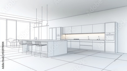 Modern Kitchen Design: Architectural Wireframe Rendering