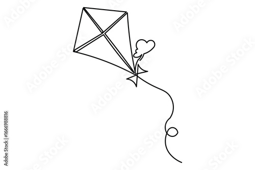 Modern kite continuous one line isolate minimalist outline sketch abstract illustration