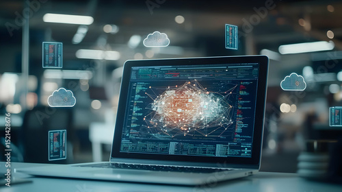 Modern Laptop Display With Abstract Data Visualization