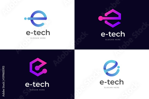 modern letter E abstract logo bundle, colorful, letter e logo for technology brand identity symbol mark design