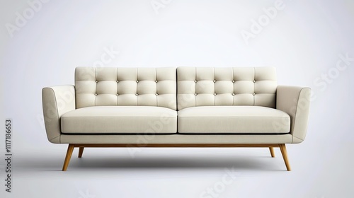 Modern Light Beige Sofa with Wooden Legs and Button Tufted Design