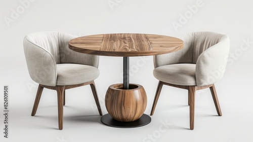 Modern Living Room Set with White Table and Three Chairs on Clean Background in 4K Ultra-Realistic Quality