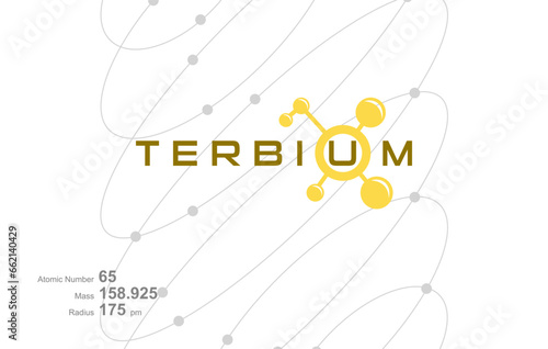 Modern logo design for the word "TERBIUM" which belongs to atoms in the atomic periodic system.