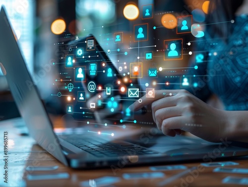 Modern Marketer Creating Mobile Marketing Strategy Using Smartphones and Laptops