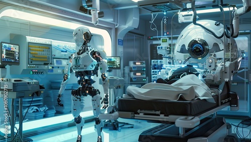 Modern medical office for surgery. Use of robot and artificial intelligence in medicine.
