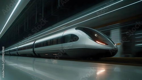 Modern Metallic High Speed Train on a Brightly Lit Platform Reflecting Light and Showing Technological Design