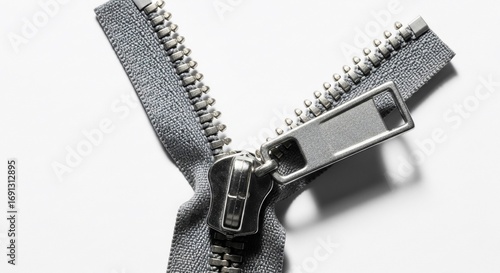 Modern metallic zipper on gray fabric detail, showcasing sleek design and functional closure for fashion projects