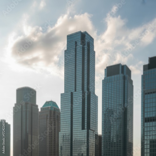 Modern Metropolis Skyline: A collection of sleek skyscrapers against a dynamic sky, embodying ambition and progress.